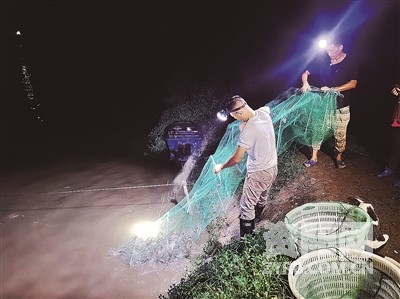 本报讯(全媒体记者 陈维)9月14日凌晨四点,在雁江区丰裕镇方山水库附近的一处南美白对虾养殖基地,负责人陈华和技术员刘影默契配合,正忙着下网、撒饵、收网……短短半个小时,第一网虾就已经上岸。