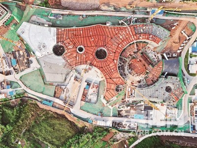 近日,记者来到安岳县石窟数字展示中心项目施工现场看到,各式各样的施工机械来回穿梭,数百名工人上下忙碌,现场一片热火朝天的建设景象。“项目一期主要有数展中心和文化交流中心。数展中心区域目前正在进行屋面板的施工,文化交流中心正在进行地下室施工。”项目经理李悟松介绍道。