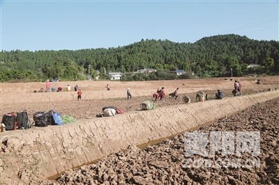 “要想油菜长得好,栽的深度要适当,土要把根全部掩盖,土壤润一点,栽下去成活率才高。”帽石村8组组长费光友一边向村民讲解油菜栽种要点,一边给大家做示范。费光友有着四十多年的务农经验,他把家里五亩多地流转给川平家庭农场后,自己也在农场务工,帮着种植和管理,一天有两百元的收入。“现在收着租金、拿着工资,日子过得一天比一天舒坦。”