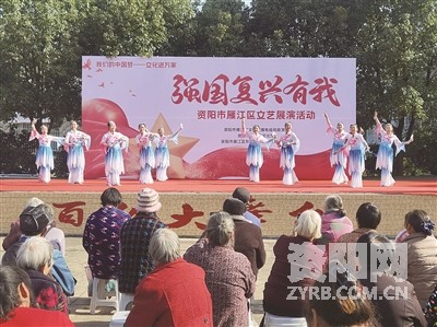 近日,在雁江区东峰镇东峰村的健身广场上演了一场精彩的文艺表演。此次活动由雁江区文广旅局、文化馆和东峰镇新时代文明实践所联合举办,舞蹈、独唱、小品等一个个精彩的文艺节目赢得村民们的热烈掌声和一致好评。