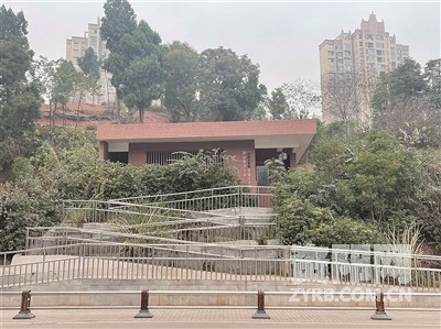 在凯旋国际小区大门外,记者看见了这座公厕,建在小坡上,褐色的墙砖、大气的造型,远远看去有模有样。但到达公厕门口需要走长长的Z字型过道,转五个弯。过道两边的围栏处长满了杂草,显然很久都没有人来打理过。