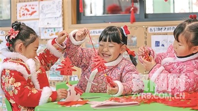 新春将至,各地张灯结彩,举办各类民俗活动,年味渐浓。图为 1月16日,贵州省铜仁市玉屏侗族自治县实验幼儿园的小朋友在制作新春主题剪纸作品。 新华社发(胡攀学 摄)
