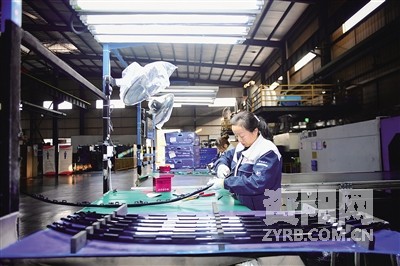 四川羽佳模塑有限公司工人正在生产汽车内饰件。