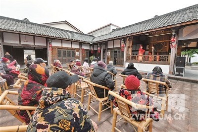 新春佳节临近,四川省资阳市雁江区振声川剧团走进社区、乡村,为戏迷送上文化大餐。图为1月25日,四川省资阳市晏家坝村村民在观看川剧表演。