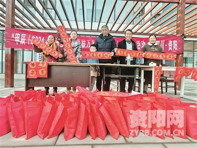 “民安国泰逢盛世,风调雨顺颂华年”“一帆风顺年年好,万事如意步步高”“金龙贺岁千祥至,彩凤迎春百福来”……活动现场,随着资阳民进会员及志愿者的现场疾书,一副副饱蘸浓墨、字迹俊秀的春联“新鲜出炉”,让村民沉浸在新年到来的喜庆氛围中,感受着中华优秀传统文化的独特魅力。