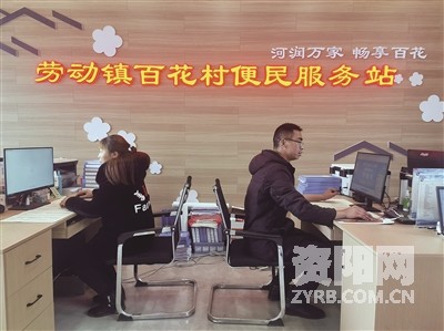 近日,乐至县劳动镇百花村的便民服务站人来人往,窗口、咨询台等地方热闹而有序。