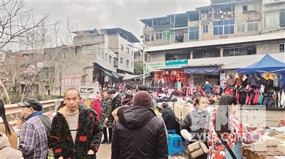 说话间,记者和彭大姐已经走到了场镇集市口。当天逢场,早上8点的集市已是人头攒动、热闹非凡。