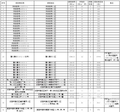 说明:1.以上资产招租年限根据实际情况调整,但最终签订租赁年限均不得超过五年;2.部分资产视实际情况分租;3.可分租的标的物,其租赁年限按照公司制定《资产租赁管理办法》制定标准执行,投标保证金收取标准按评估年租金的10%取整收取。