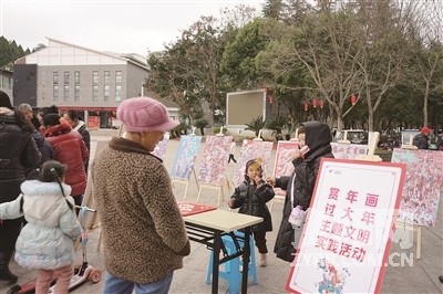 记者看到,前来“赶集”的市民正有序排队参观资阳市创建全国文明城市成果展览,领取志愿者们送上的年画、“福”字;来自辖区医院、诊所的医务人员正专心地为群众量血压、测血糖;场地另一侧的“爱心义剪”区,不少群众正排队等候志愿者为自己解决“头”等大事;在中华优秀传统文化文明实践体验区,东峰剪纸志愿服务队向大家现场展示了精美绝伦的剪纸作品;糖画摊区则挤满了好奇等待的小朋友。