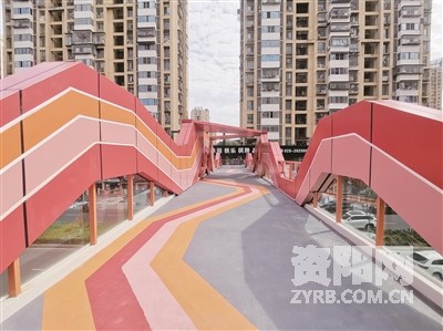马家巷天桥则位于建设南路一段马家巷口西侧,全长22.5米。其造型因地制宜地通过线条变化模拟山体景观,寓意“山”景从障碍向资源的转变,层次丰富,与环境相融,彰显资阳的城市生态文化内涵。通行后,可满足雁江三小、中城街和马家巷的行人过街需求。
