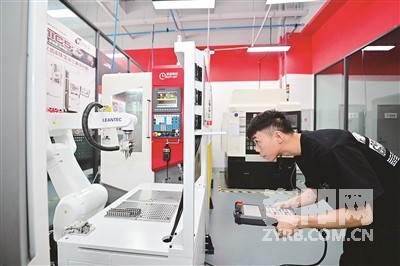 “这个设备之前需要人工操作,用手动的方式更换材料,所以生产时间比较长,人工成本很高。改进以后,这个设备可以全自动化生产,不需要人操作,另外通过机器人上下料,设备更加稳定,产量就更高。”公司总经理颜刚介绍,目前公司正在申请“个性化基台冠桥”三类医疗器械注册证,预计今年底就能拿证,届时就可以借鉴个性化基台工业4.0自动化设备来实现量产。