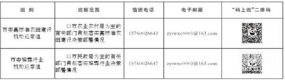 根据《中国共产党巡视工作条例》规定,巡察组主要受理反映高标准农田建设和殡葬行业领域相关问题。对其他与巡察工作无直接关系的个人诉求、涉法涉诉等信访问题,将按照分级负责、属地管理原则,转交有关单位办理。巡察组受理电话时间为工作日9:00至18:00。
