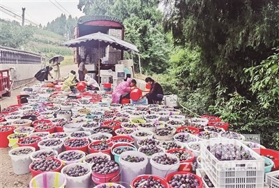 眼下正是李子大量上市的季节。雁江区保和镇黄谷村集体经济凤凰李种植基地喜获丰收。据悉,该村集体经济共种植凤凰李160亩,自6月中旬开始销售以来,已售出10余万斤。目前的批发价为每斤1.4元,零售价每斤5元。图为近日,村民将李子分拣装车。