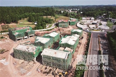 在陈毅故里景区德胜广场旁的真红巷文旅街区项目建设现场,推土机、吊装车协同配合,项目建设进度正有条不紊地推进。