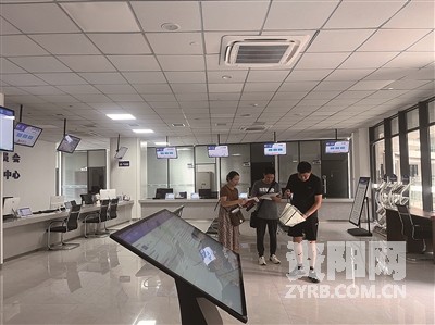 为节约用电,市民服务中心大厅内只开启了一半的照明设备。