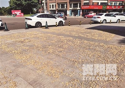近日,记者在资阳城区走访发现,个别路段有市民或商家在人行道上随意晾晒花生、玉米、棉被等,把公路变成了自家临时晾晒场。“这既影响了城市形象,又一定程度影响了市民正常通行,也给过往车辆安全带来隐患。”市民希望有关部门加强宣传和管理,抵制随意晾晒,维护城市形象、爱护美好环境。图为人行道上晾晒的花生(城东新区雷音大道)。