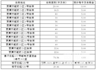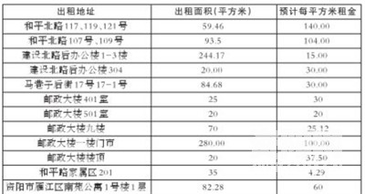 (三)上表中为预计价格,具体价格请来电咨询,租赁价格不低于评估价格。