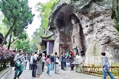 游览安岳石刻的游客络绎不绝。全媒体记者李思彤 摄