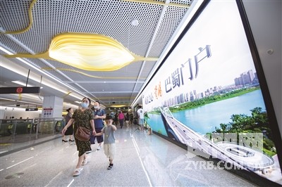 本报讯(全媒体记者 陈维) 9月29日,记者走进轨道交通资阳线在资阳境内的5座站点,很容易就能发现,其内部装饰装修皆融入了极具代表性的资阳元素,柠檬黄与灰白为主色调的站内大厅宽敞明亮,柠檬造型的顶灯清新别致,车站柱面上的安岳石刻、铜车马、三贤故里等文化元素尽显资阳文化底蕴。