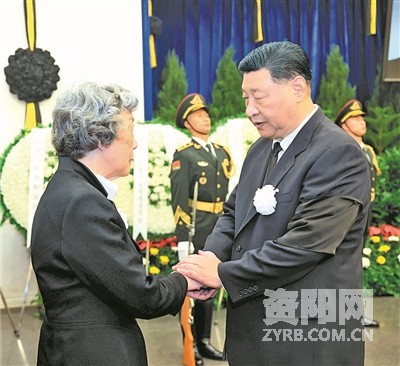 10月14日,吴邦国同志遗体在北京八宝山革命公墓火化。习近平、赵乐际、王沪宁、蔡奇、丁薛祥、李希、韩正等前往八宝山送别,胡锦涛送花圈表示哀悼。这是习近平与吴邦国亲属握手,表示深切慰问。 新华社记者 鞠鹏 摄