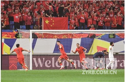 进球后的张玉宁激动万分,泪洒赛场。“当时没有控制住自己,很激动,在重要的场合能够打入进球。最重要的是我们大家每个人都像斗士一样,每个人上抢、每个人补位,这场比赛很好地诠释了我们的精神。”张玉宁赛后说。