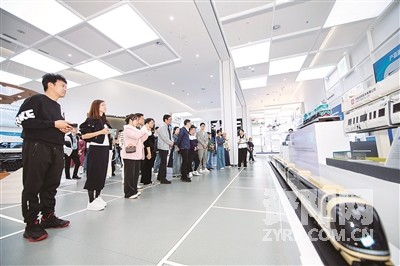“这就是国内首创、拥有完全自主知识产权的新制式车辆——齿轨列车。”该公司讲解员介绍,齿轨列车是一种运用于登山铁路的新型轨道交通车辆,通过在车辆走行部配备一个或多个齿轮的方式,列车在爬坡时与安装于轨道中间的齿条啮合,借助齿轮齿条的咬合力稳步行进,最高可在480‰的坡道上安全行驶。未来,齿轨列车将成为国内山地轨道交通及观光旅游的重要交通工具之一。