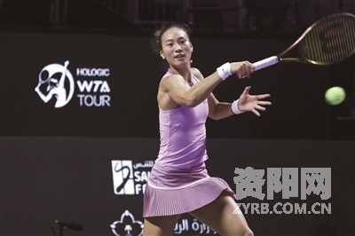 6日在沙特阿拉伯首都利雅得进行的女子网球选手协会(WTA)年终总决赛小组赛中,中国“一姐”郑钦文直落两盘击败意大利选手保利尼,首次参赛就晋级半决赛。图为郑钦文在比赛中回球。