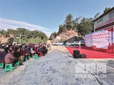 11月28日,以“文艺演出促普法,宪法宣传入人心”为主题的雁江区文化惠民演出暨“乡村振兴 与‘宪’同行”主题活动走进丰裕镇共和村,为当地村民献上一道普法文艺大餐。图为活动现场。