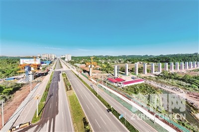 建设中的成渝中线高铁跨安岳大道特大桥。全媒体记者 张建 摄