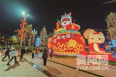 近日,市民在雁江区九曲河广场观赏新年花灯。全媒体记者 秦建华 摄