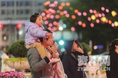 市民在雁江区九曲河广场观赏新年花灯。全媒体记者 秦建华 摄