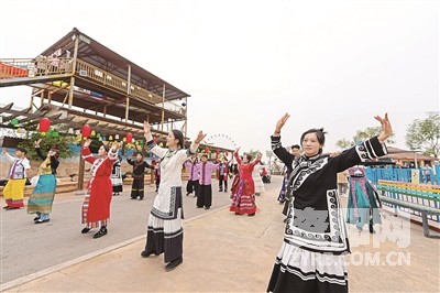 春节期间,乐至县秋千王国景区人气爆棚,处处洋溢着欢乐和年味儿。图为1月30日,园区为游客们准备的快闪表演。全媒体记者 秦建华 摄