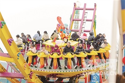 ▲1月30日,市民在乐至县秋千王国景区体验“神州飞碟”项目。