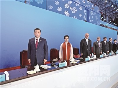 夜幕下,哈尔滨国际会展体育中心华灯璀璨,流光溢彩。开幕式开始前,来自黑龙江各地的群众带来充满地域特色的表演,现场气氛十分热烈。