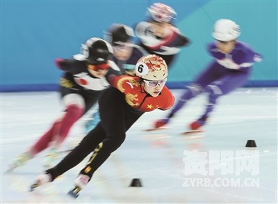 ③2月6日,中国选手杨婧茹(前)在比赛中。短道速滑女子1500米四分之一决赛,中国选手公俐、杨婧茹、臧一泽全部晋级半决赛。