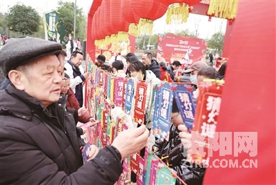 2月11日,乐至县“欢乐闹元宵 快乐过大年”新时代文明实践活动中,市民猜灯谜。