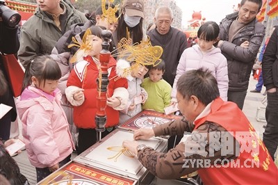 2月11日,“爱在资阳 美在文明”新春文明实践集市上,志愿者制作糖画。