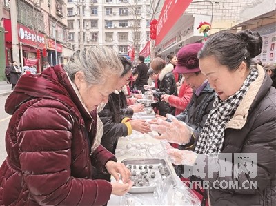 2月11日,雁城资溪街道九曲河社区居民包汤圆。