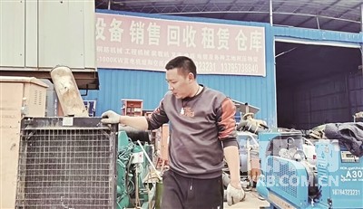 2月28日,在雁江区斑竹村渝恒停车场的一个仓库,许杨平正戴着劳保手套忙碌着,额头上的机油痕迹清晰可见。仓库是他租来用以二手机电回收、出租与维修的。在车城大道四段和外环路西一段交会处,他和妻子还经营了一家五金机电零售店。这也正是网传视频中的五金店。
