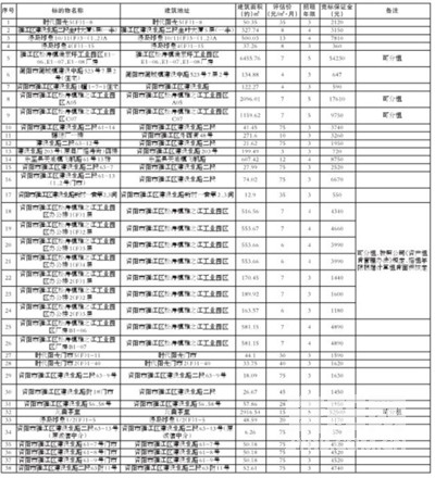 一、标的物名称、地址、面积、评估价等情况(见下表):