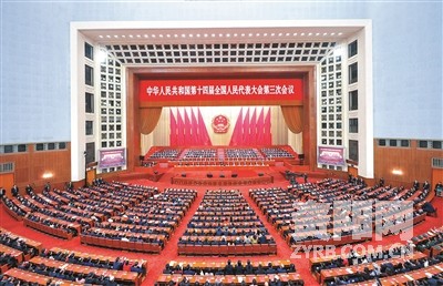 下午3时30分,李鸿忠宣布:中华人民共和国第十四届全国人民代表大会第三次会议闭幕。大会在雄壮的国歌声中结束。
