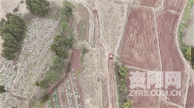 另一边,大桐庙村1组的撂荒地改造现场,随着旋耕机的轰鸣声响起,原本板结的土块变得疏松,荒坡焕发新生。“这些山坡上原来都是撂荒地,改造完成后,下个月就要播种水稻。”大桐庙村党支部书记孟艳说,面对缺水困境,堪嘉镇在大桐庙村10组开垦1045亩撂荒坡地,引入旱优73号水稻品种。该品种根系发达,耐旱性强,配合旋耕机耕地、播种机精准播种、无人机喷洒农药,实现“水稻上山”、全机械化耕种的突破。田间部署的湿度传感器,可根据土壤数据提醒工人补水、施肥,好比为土地装上了“最强大脑”,实现精准灌溉、精准施肥。