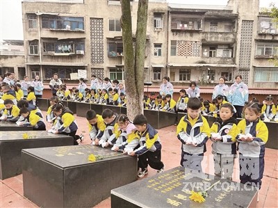 小朋友为烈士献花。