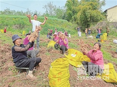 在采收现场,正在分拣黄精的村民刘福容擦了把汗,面前黄精堆成小山。她一边忙碌一边笑着说:“每天能挣60元,家门口上班比外出打工强多了。”在这里,共有150余名村民和她一样当起了“上班族”,实现家门口就业增收。