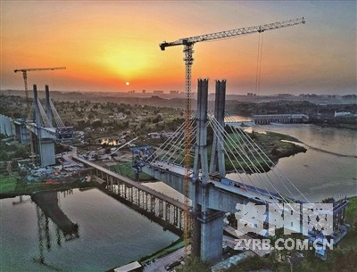 《夕阳山河间 桥起新征程》。 付堪辉4月17日19:00摄于成达万高铁南津驿特大桥。