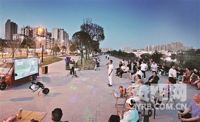 《河堤夜曲》。 李大忠4月20日19:30摄于雁城苌弘广场防洪堤。