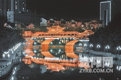 《夜映廊桥》。 魏前程4月7日19:58摄于雁城三贤公园廊桥。