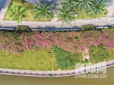 近段时间,雁城九曲河示范带迎来三角梅的盛放期。一簇簇、一团团娇艳的三角梅沿着河岸竞相绽放,与碧绿河水、沿岸步道相映成趣,犹如斑斓锦缎,勾勒出一幅绚丽多彩的生态画卷,为城市增添了一道迷人的风景线。图为盛开的三角梅。 全媒体记者 张露 摄