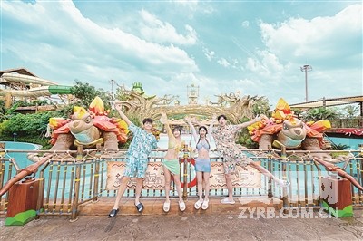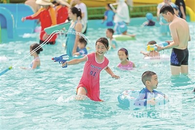 蹦蹦岛:在清波环绕的蹦蹦岛上,孩子跳跃释放活力,家长一旁欢笑护航,全家在弹跳中撞碎夏日燥热。