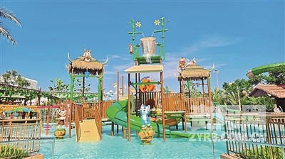 嬉戏池:无边际泳池衔接阳光沙滩,躺卧浮椅随波轻晃,抬眼可见蓝天与水花同频闪烁,与爱人手持冰饮闲聊,在海滨风情中复刻度假般的慵懒浪漫。